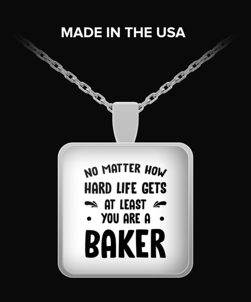 Funny Baker Necklace Square Pendant - No Matter How Hard Life Gets You Are A Baker - Unique Inspirational Gift Best For Men Women