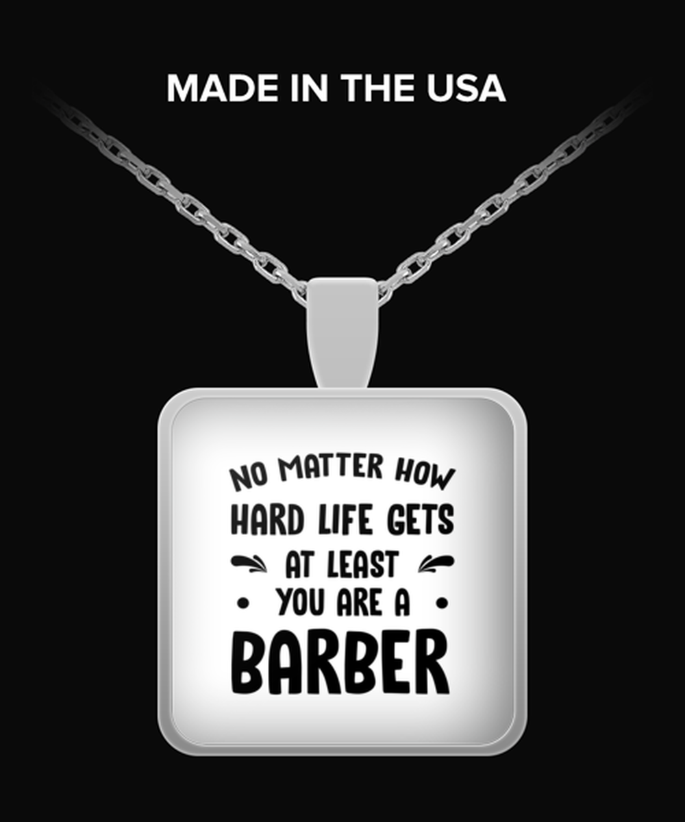 Funny Barber Necklace Square Pendant - No Matter How Hard Life Gets You Are A Barber - Unique Inspirational Gift Best For Men Women