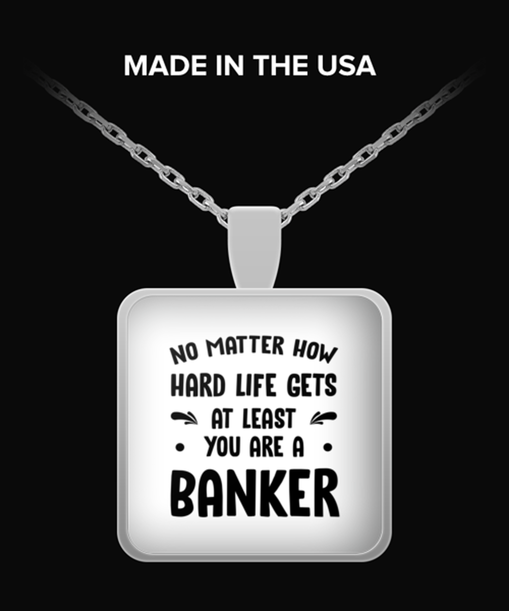 Funny Banker Necklace Square Pendant - No Matter How Hard Life Gets You Are A Banker - Unique Inspirational Gift Best For Men Women