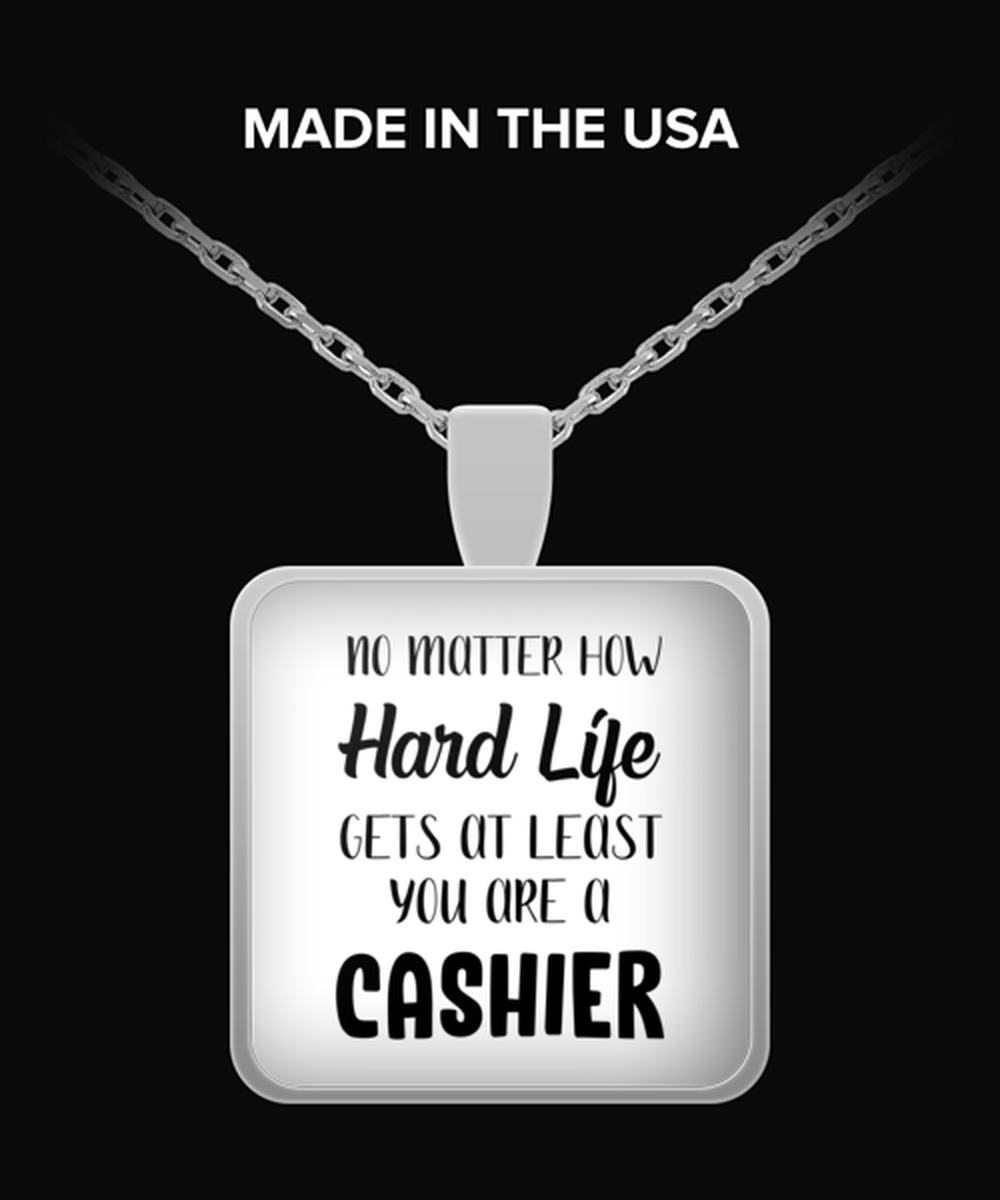 Funny Cashier Necklace Square Pendant - No Matter How Hard Life Gets You Are A Cashier - Unique Inspirational Gift Best For Men Women