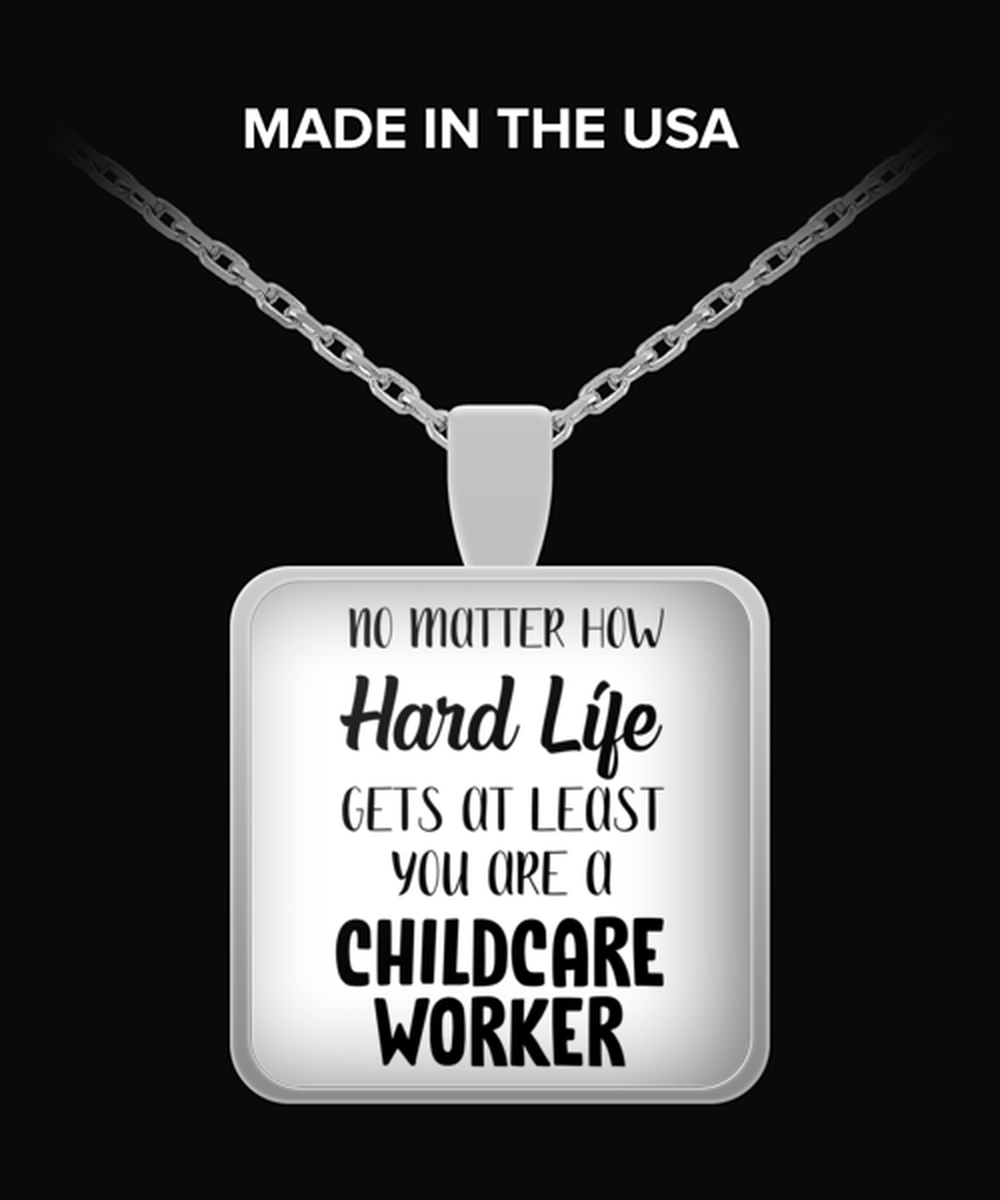 Funny Childcare worker Necklace Square Pendant - No Matter How Hard Life Gets You Are A Childcare worker - Unique Inspirational Gift Best For Men