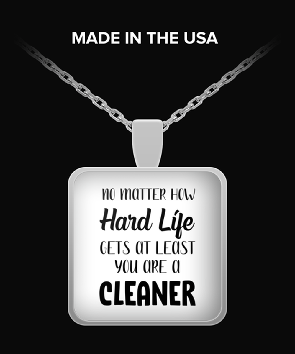 Funny Cleaner Necklace Square Pendant - No Matter How Hard Life Gets You Are A Cleaner - Unique Inspirational Gift Best For Men Women