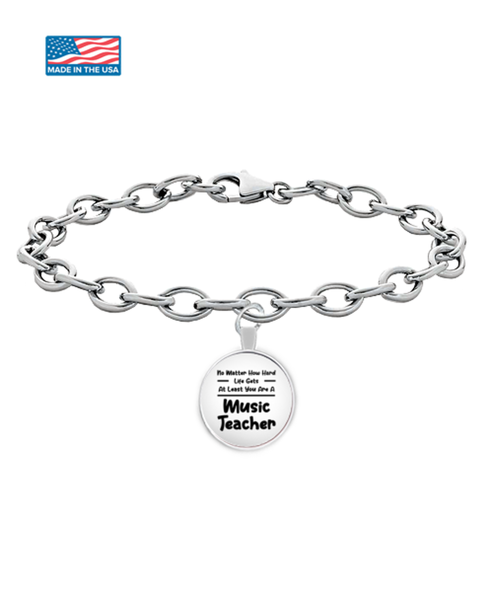 - Music teacher bracelet made of eco-friendly stainless steel that will never rust, stain, or corrode, nor will it hurt your wrist.