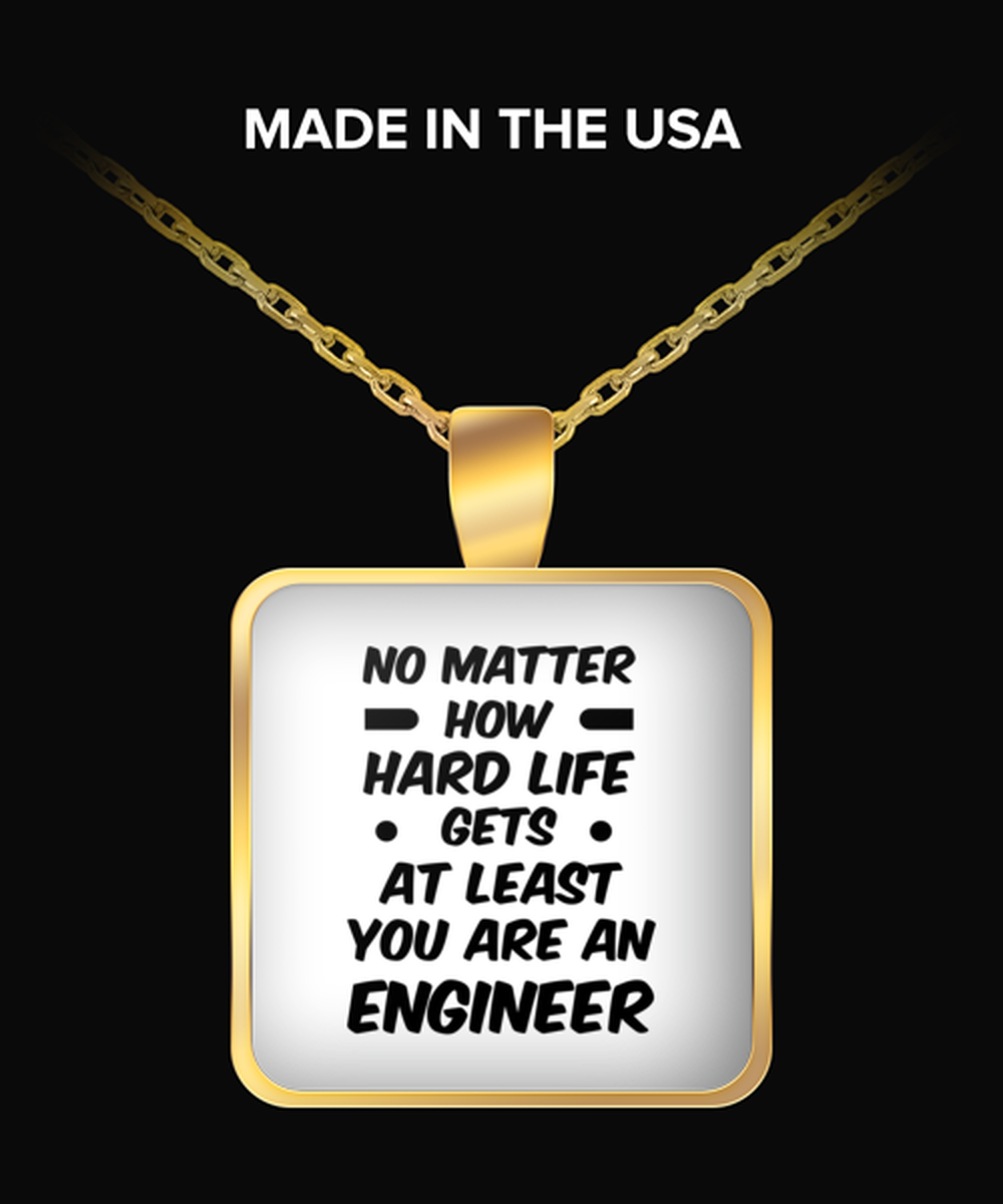Funny Engineer Necklace Square Gold Pendant - No Matter How Hard Life Gets You Are An Engineer - Unique Inspirational Gift Best For Men Women