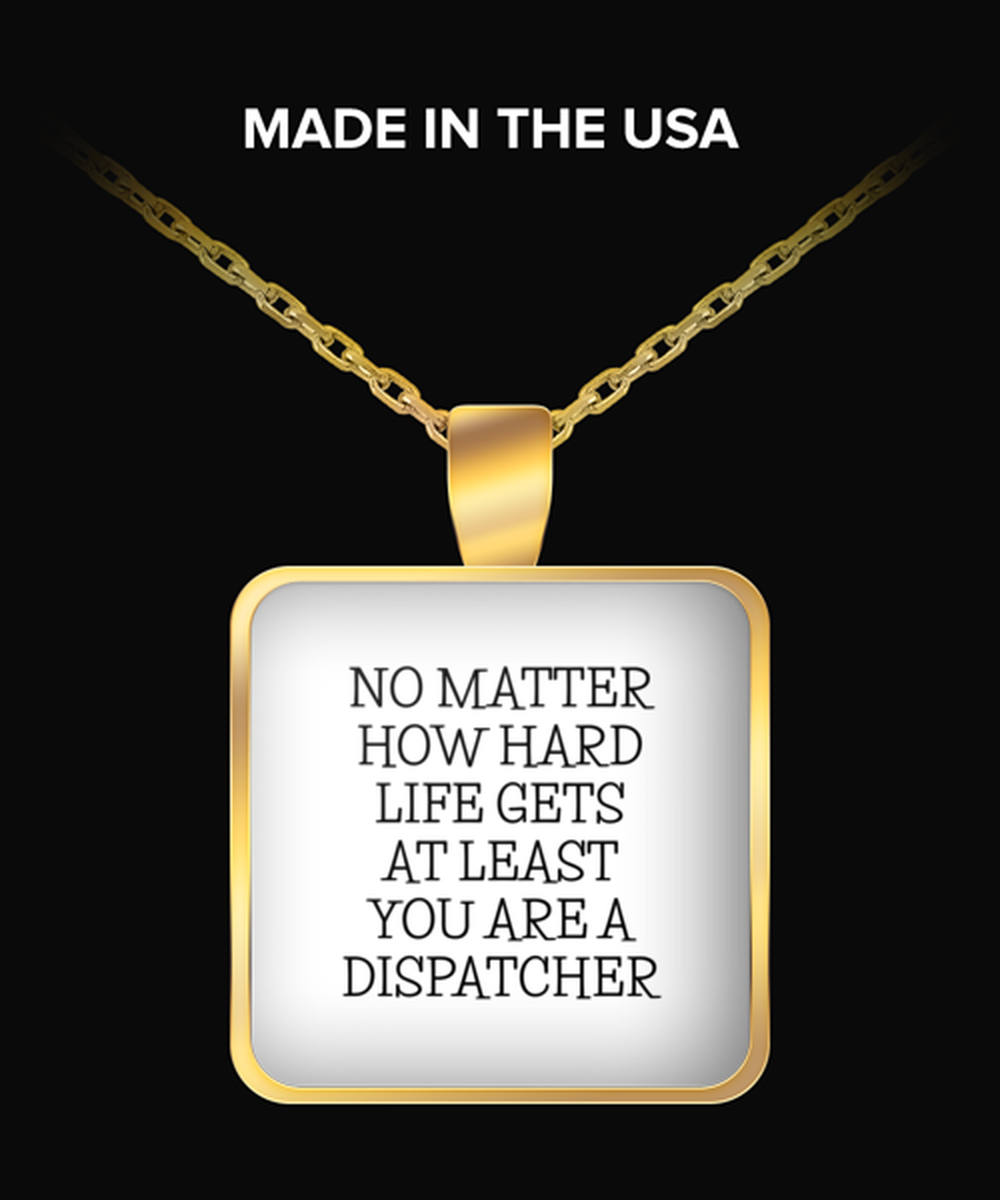 Funny Dispatcher Officer Necklace Square Gold Pendant - No Matter How Hard Life Gets You Are A Dispatcher - Unique Inspirational Gift Best For Men