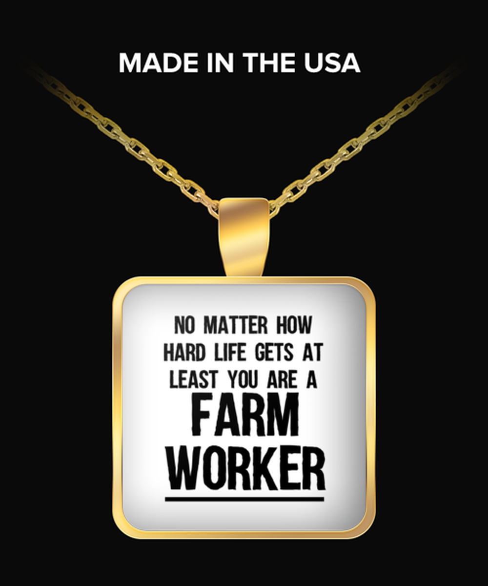 Funny Farm worker Necklace Square Gold Pendant - No Matter How Hard Life Gets You Are A Farm worker - Unique Inspirational Gift Best For Men Women