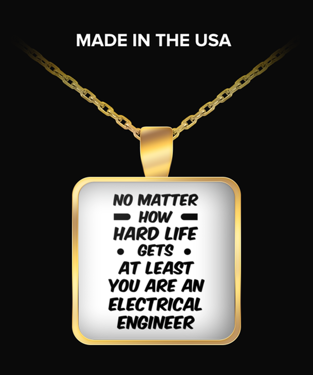 Funny Electrical engineer Necklace Square Gold Pendant - No Matter How Hard Life Gets You Are An Electrical engineer - Unique Inspirational Gift Best