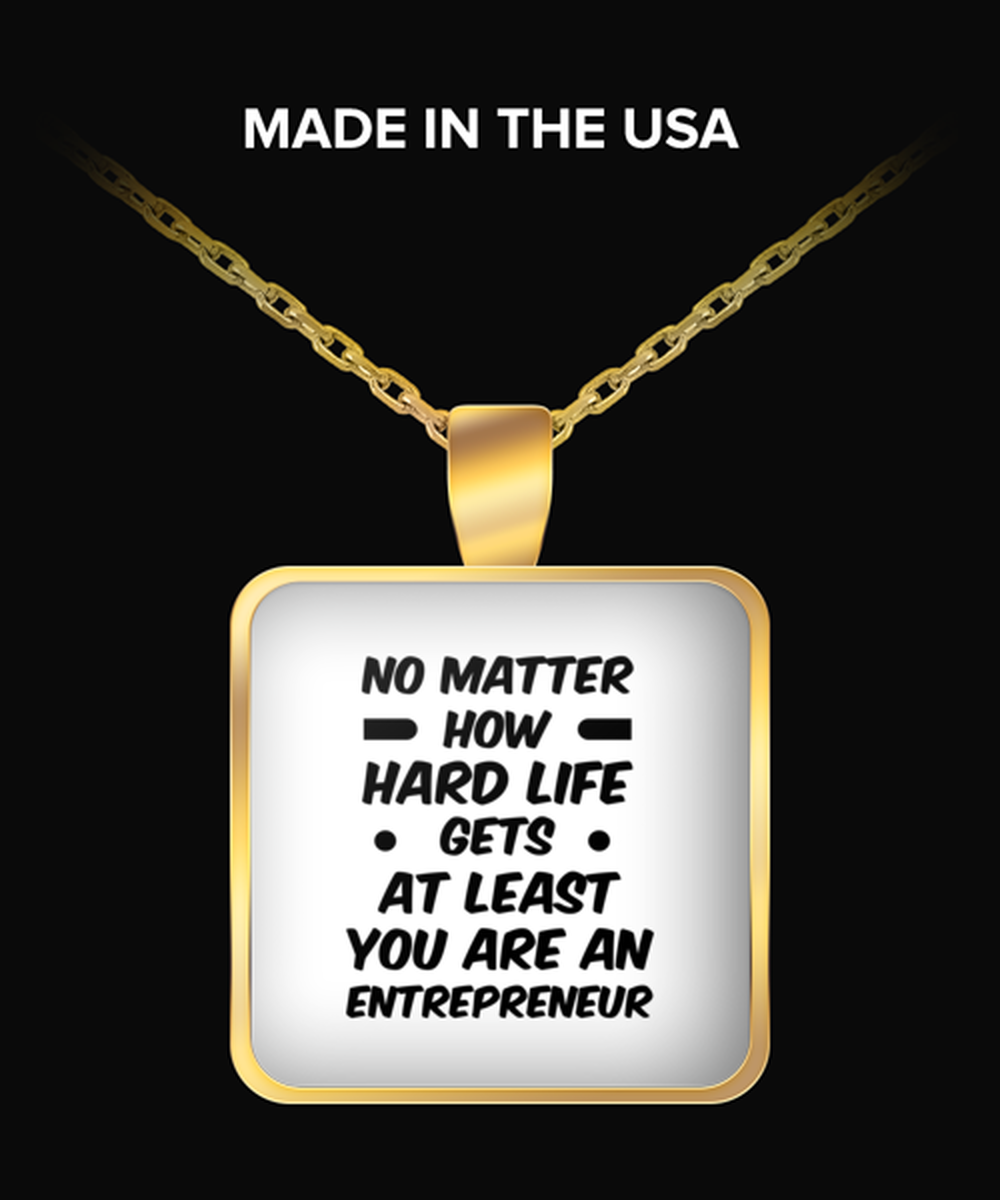 Funny Entrepreneur Necklace Square Gold Pendant - No Matter How Hard Life Gets You Are An Entrepreneur - Unique Inspirational Gift Best For Men Women