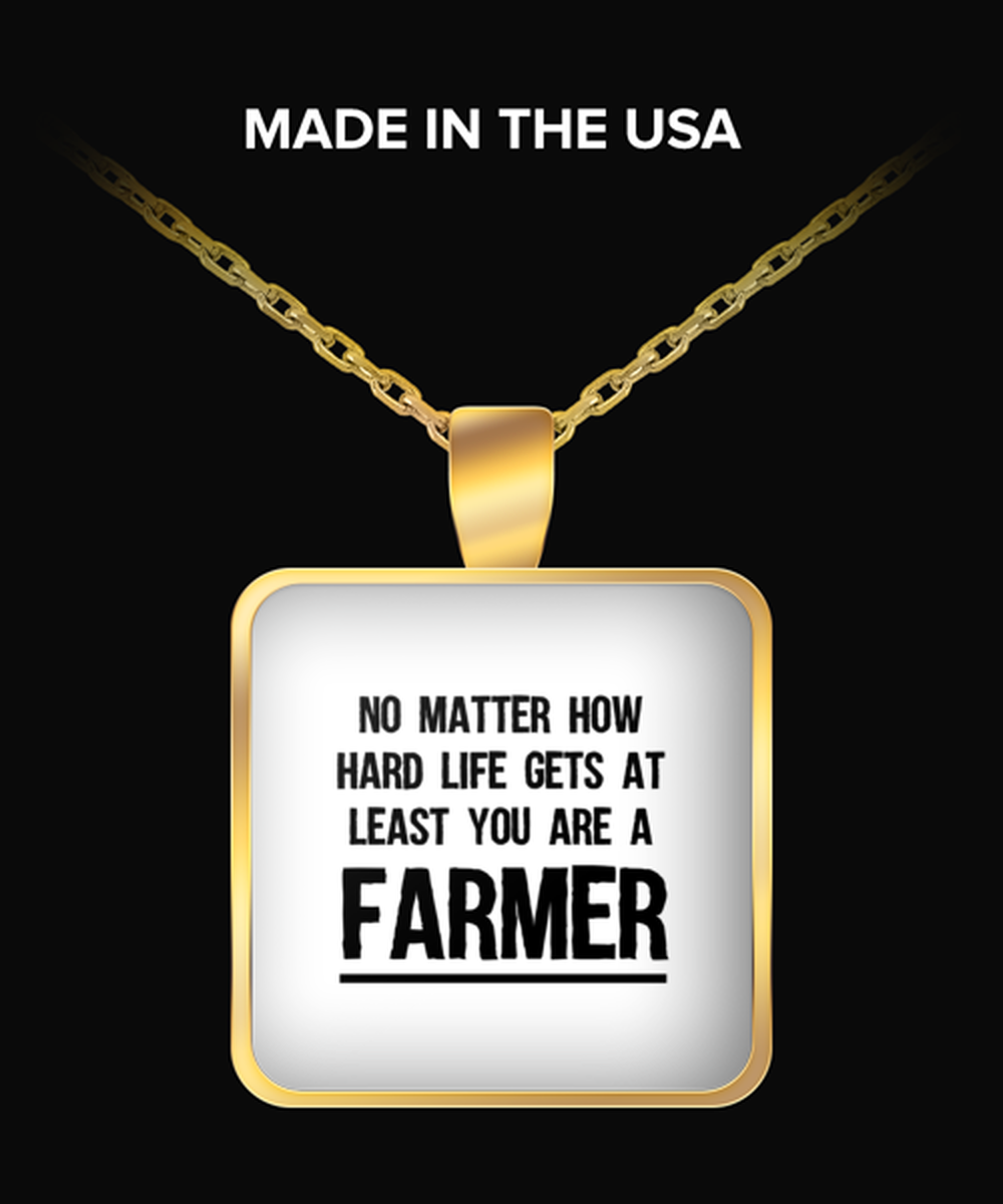 Funny Farmer Necklace Square Gold Pendant - No Matter How Hard Life Gets You Are A Farmer - Unique Inspirational Gift Best For Men Women