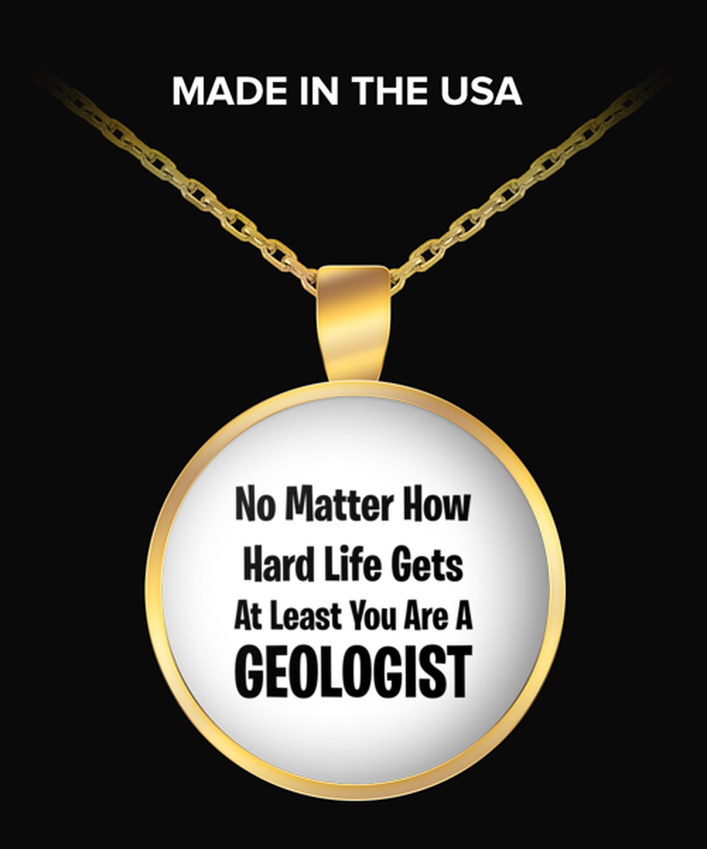 Funny Geologist Necklace Round Gold Pendant - No Matter How Hard Life Gets You Are A Geologist - Unique Inspirational Gift Best For Men Women