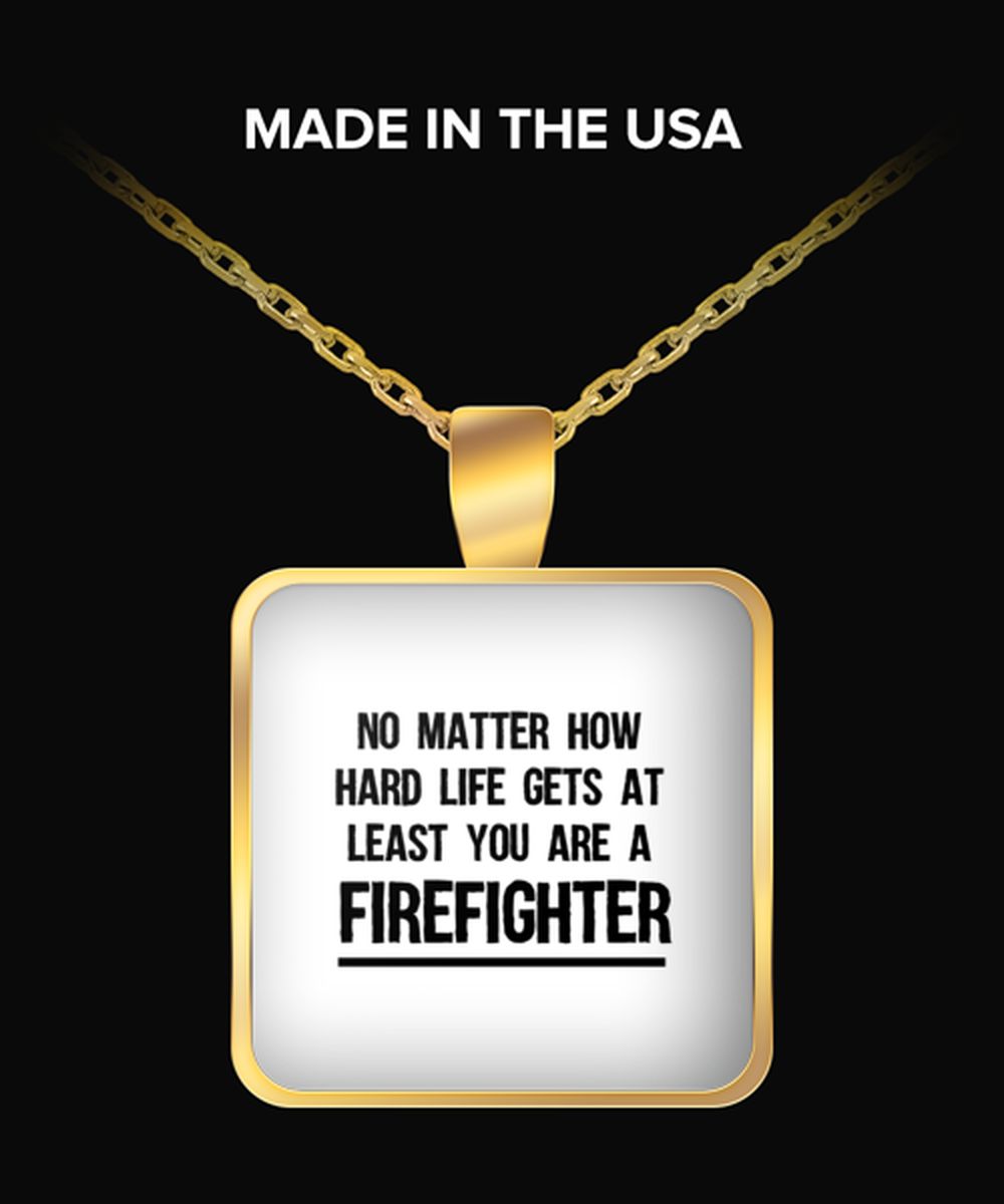 Funny Firefighter Necklace Square Gold Pendant - No Matter How Hard Life Gets You Are A Firefighter - Unique Inspirational Gift Best For Men Women