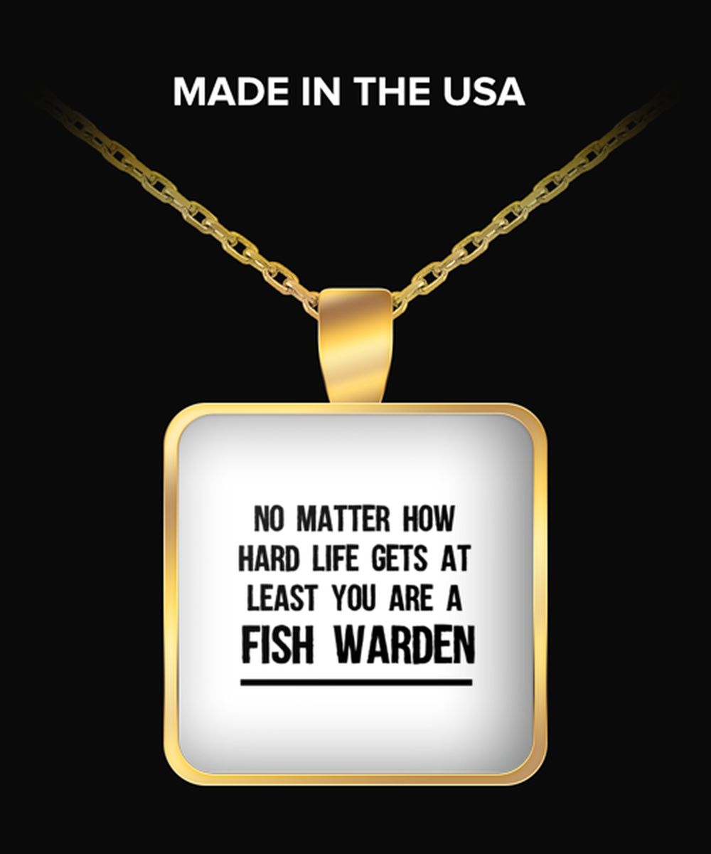 Funny Fish warden Necklace Square Gold Pendant - No Matter How Hard Life Gets You Are A Fish warden - Unique Inspirational Gift Best For Men Women