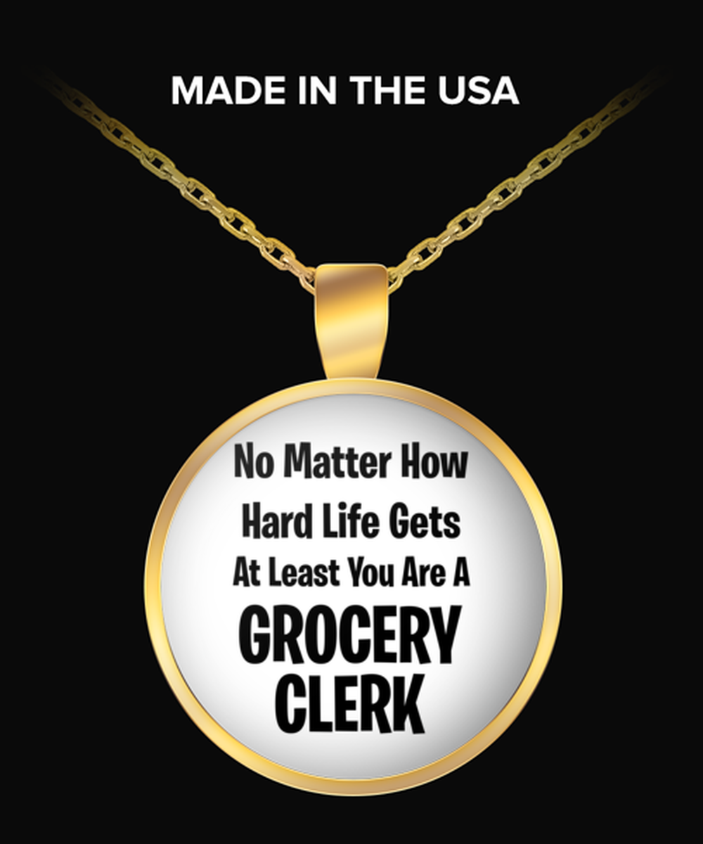 Funny Grocery clerk Necklace Round Gold Pendant - No Matter How Hard Life Gets You Are A Grocery clerk - Unique Inspirational Gift Best For Men Women