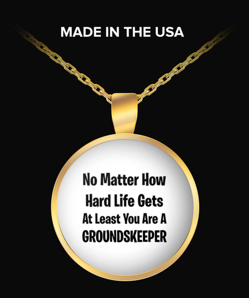 Funny Groundskeeper Necklace Round Gold Pendant - No Matter How Hard Life Gets You Are A Groundskeeper - Unique Inspirational Gift Best For Men Women