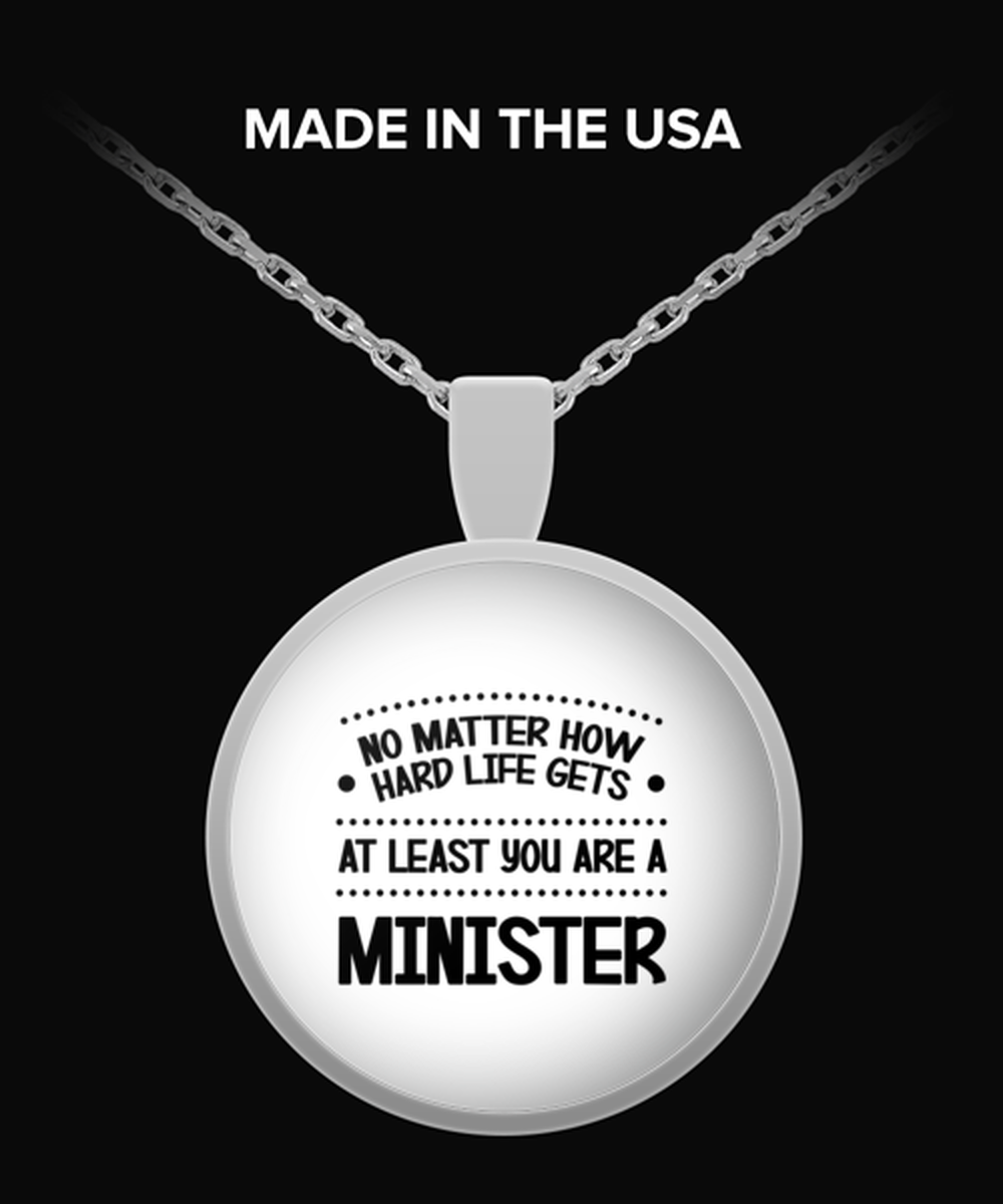 Funny Minister Necklace Round Pendant - No Matter How Hard Life Gets You Are A Minister - Unique Inspirational Gift Best For Men Women