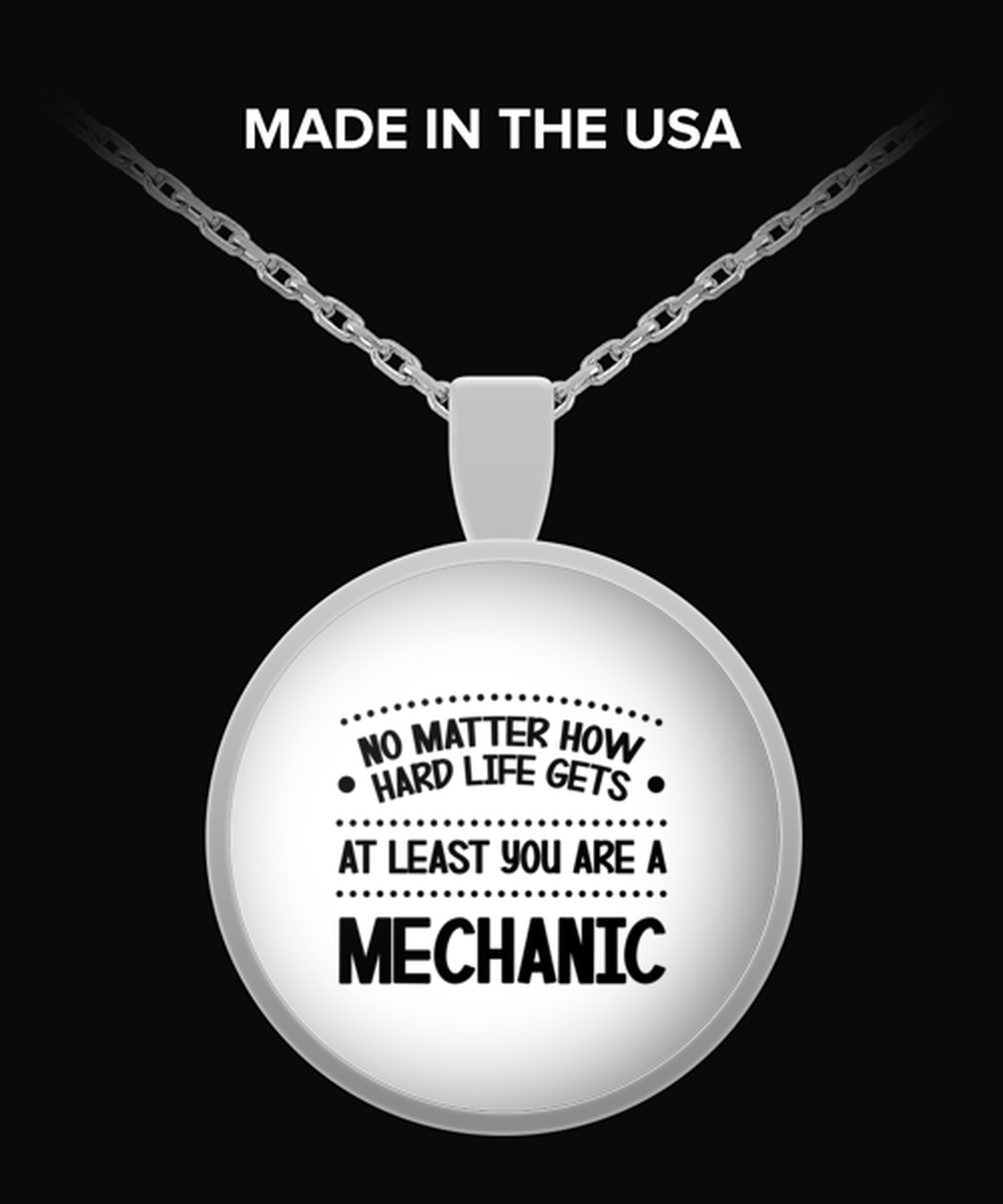Funny Mechanic Necklace Round Pendant - No Matter How Hard Life Gets You Are A Mechanic - Unique Inspirational Gift Best For Men Women