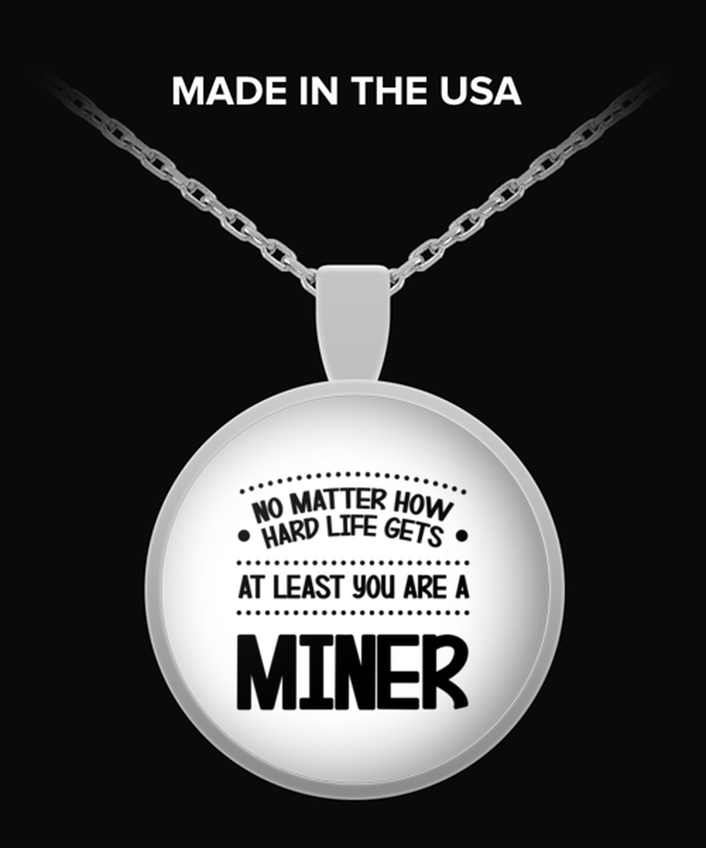 Funny Miner Necklace Round Pendant - No Matter How Hard Life Gets You Are A Miner - Unique Inspirational Gift Best For Men Women