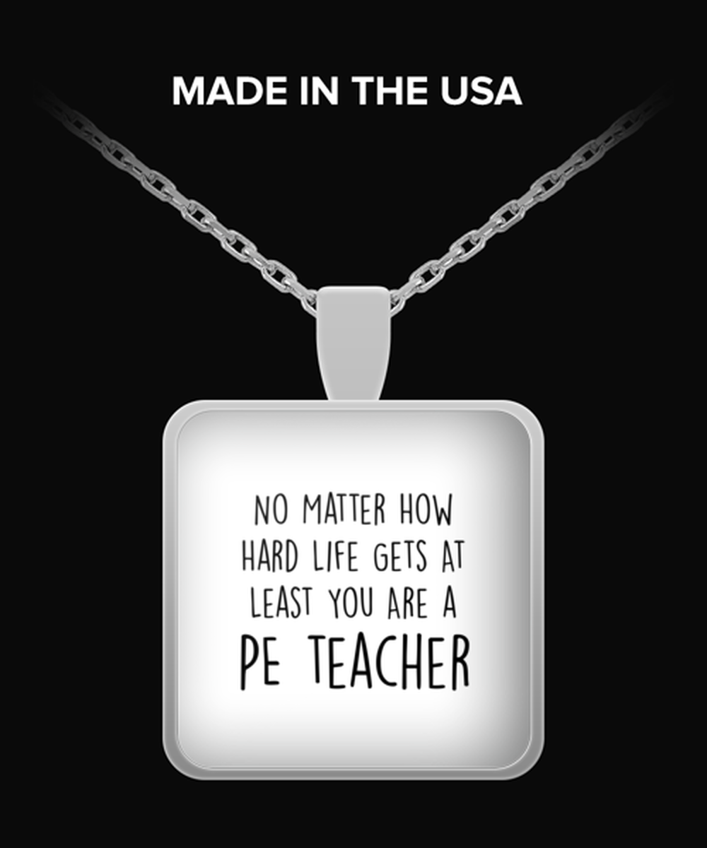 Funny PE teacher Necklace Square Pendant - No Matter How Hard Life Gets You Are A PE teacher - Unique Inspirational Gift Best For Men Women