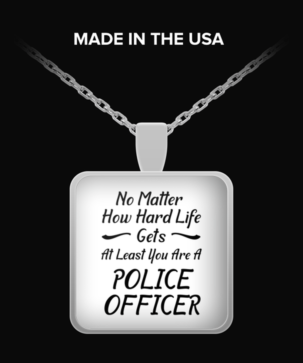 Funny Police officer Necklace Square Pendant - No Matter How Hard Life Gets You Are A Police officer - Unique Inspirational Gift Best For Men Women