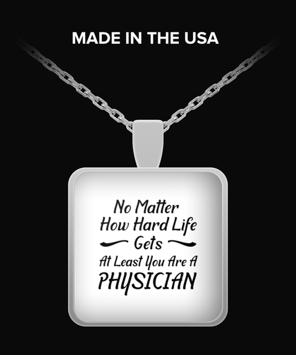 Funny Physician Necklace Square Pendant - No Matter How Hard Life Gets You Are A Physician - Unique Inspirational Gift Best For Men Women