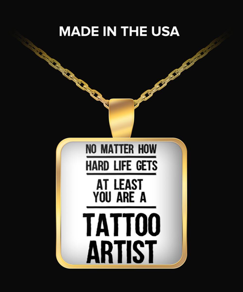 Funny Tattoo artist Necklace Square Gold Pendant - No Matter How Hard Life Gets You Are A Tattoo artist - Unique Inspirational Gift Best For Men Women