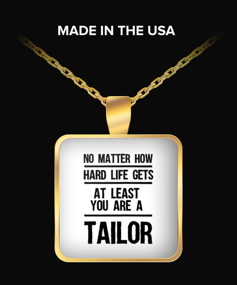 Funny Tailor Necklace Square Gold Pendant - No Matter How Hard Life Gets You Are A Tailor - Unique Inspirational Gift Best For Men Women