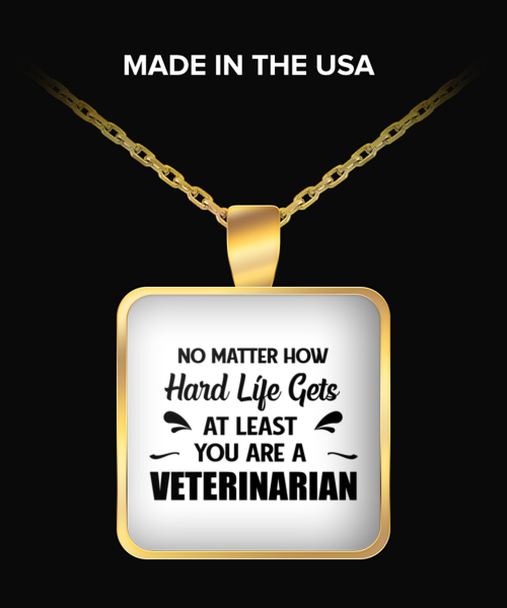 Funny Veterinarian Necklace Square Gold Pendant - No Matter How Hard Life Gets You Are A Veterinarian - Unique Inspirational Gift Best For Men Women