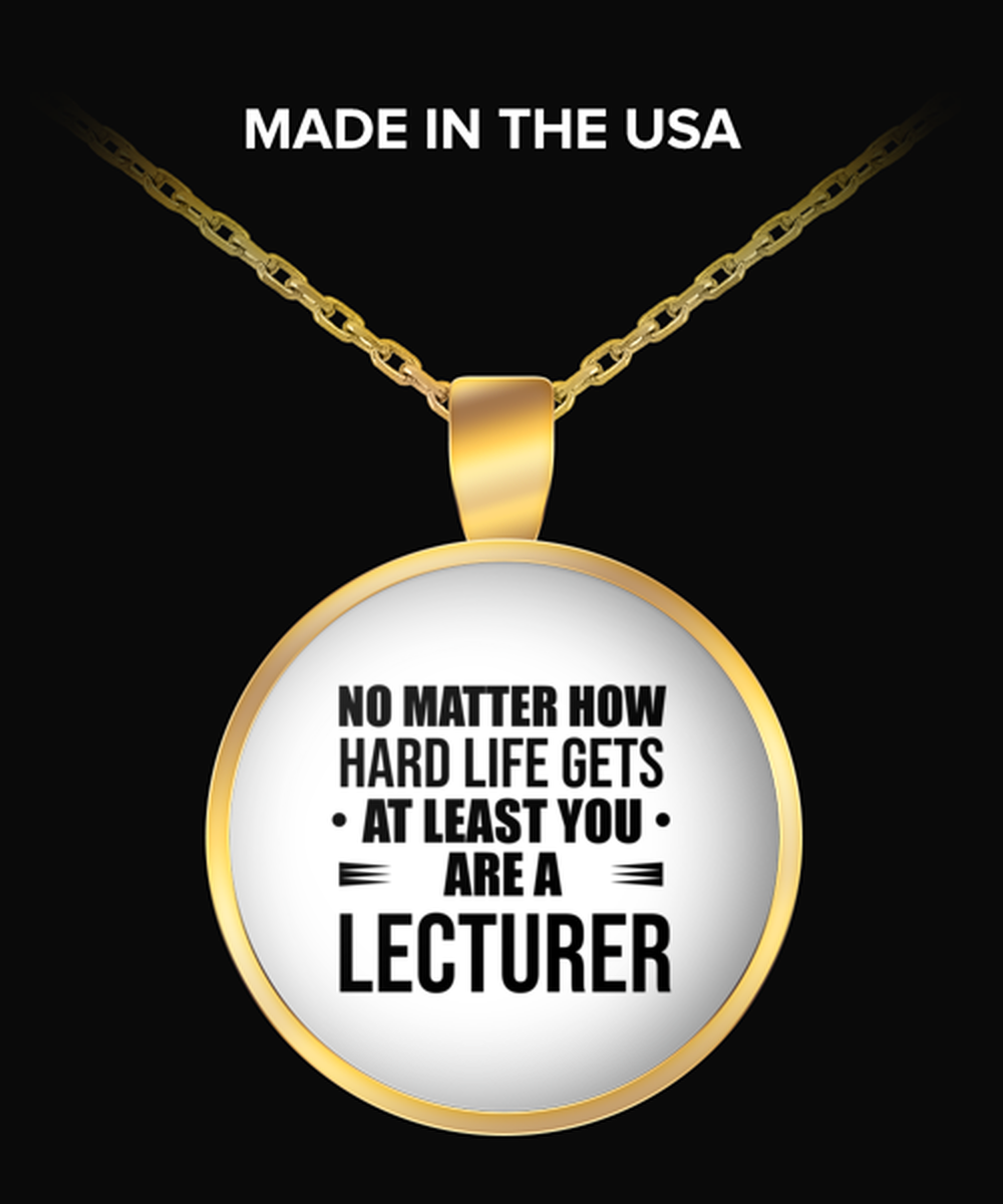 Funny Lecturer Necklace Round Gold Pendant - No Matter How Hard Life Gets You Are A Lecturer - Unique Inspirational Gift Best For Men Women