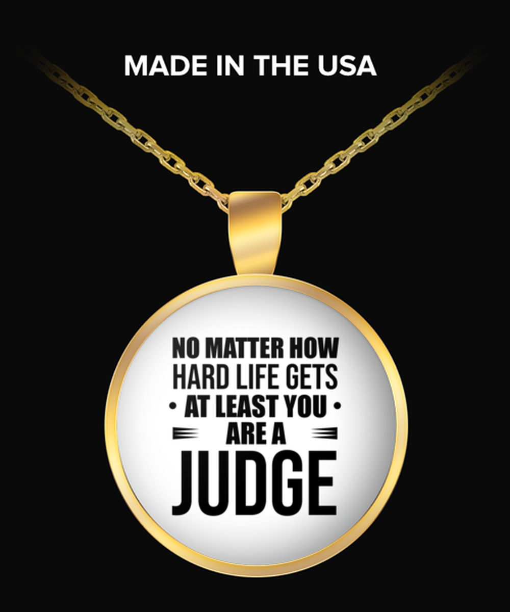 Funny Judge Necklace Round Gold Pendant - No Matter How Hard Life Gets You Are A Judge - Unique Inspirational Gift Best For Men Women