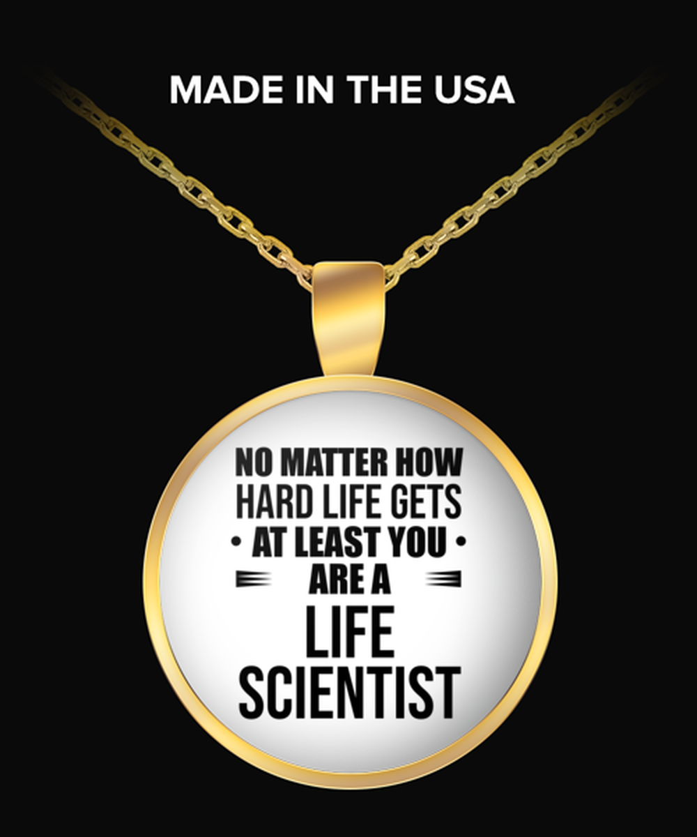 Funny Life scientist Necklace Round Gold Pendant - No Matter How Hard Life Gets You Are A Life scientist- Unique Inspirational Gift Best For Men Women