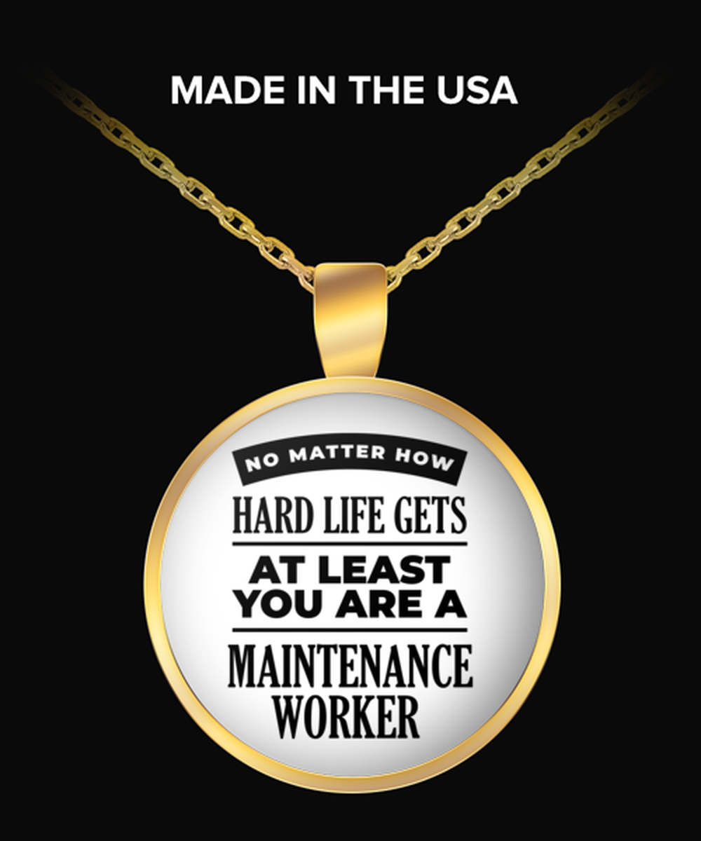 Funny Maintenance worker Necklace Round Gold Pendant - No Matter How Hard Life Gets You Are A Maintenance worker - Unique Inspirational Gift Best For