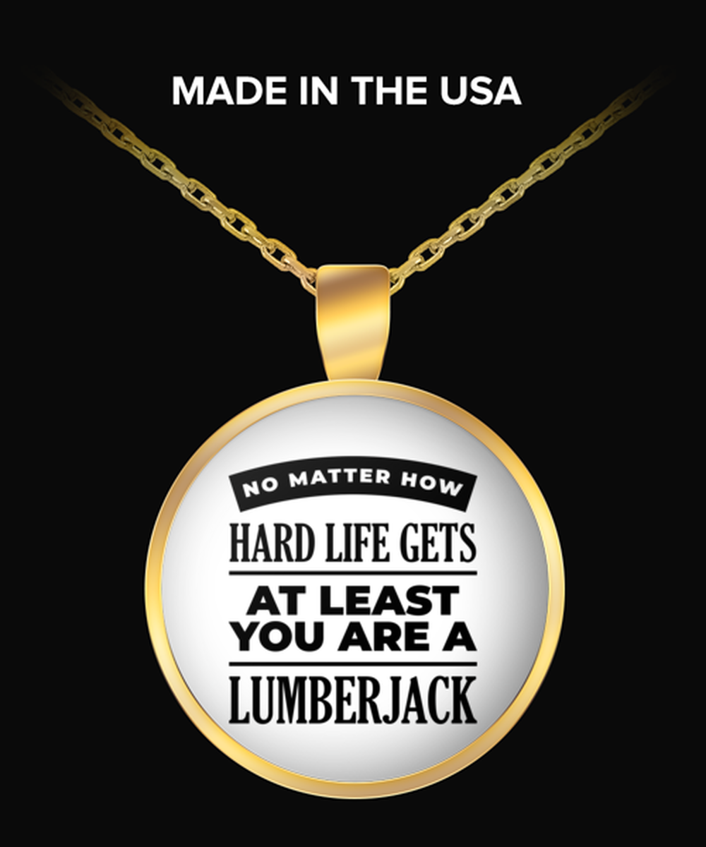 Funny Lumberjack Necklace Round Gold Pendant - No Matter How Hard Life Gets You Are A Lumberjack - Unique Inspirational Gift Best For Men Women