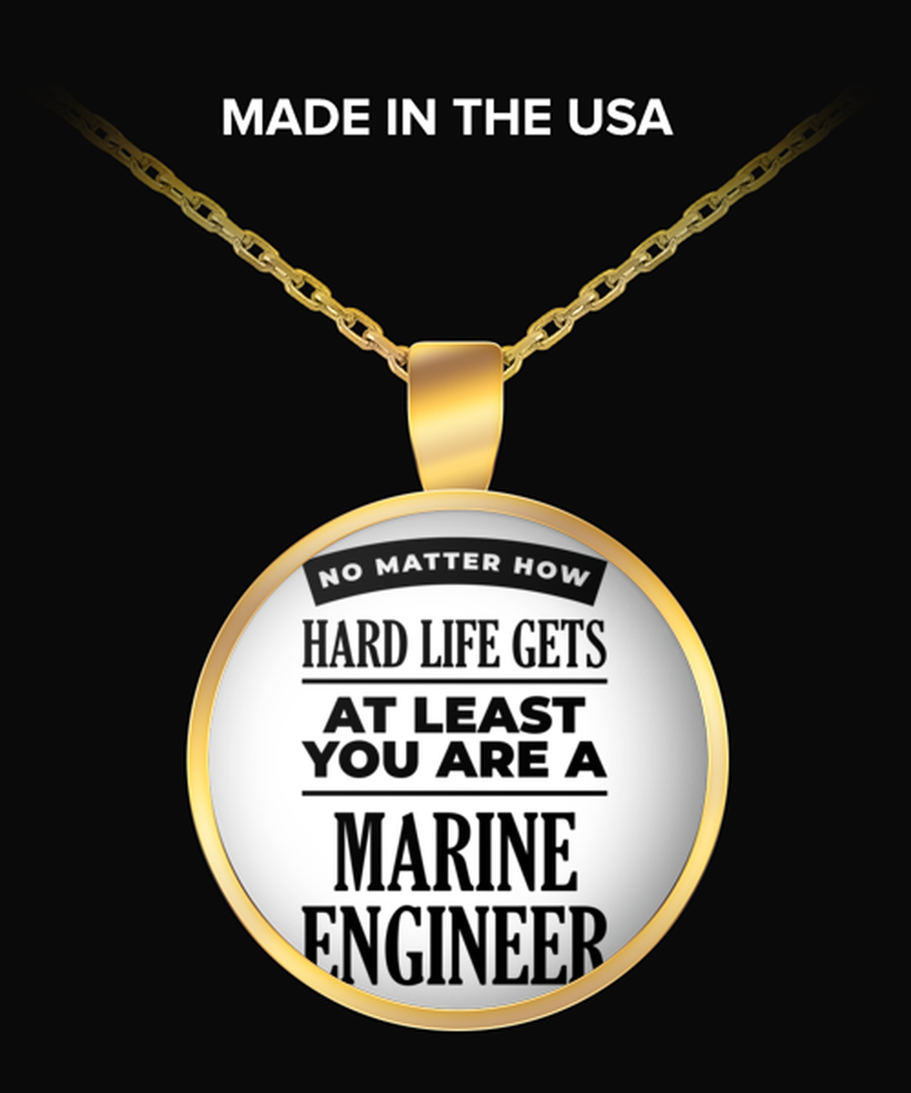 Funny Marine engineer Necklace Round Gold Pendant - No Matter How Hard Life Gets You Are A Marine engineer - Unique Inspirational Gift Best For Men