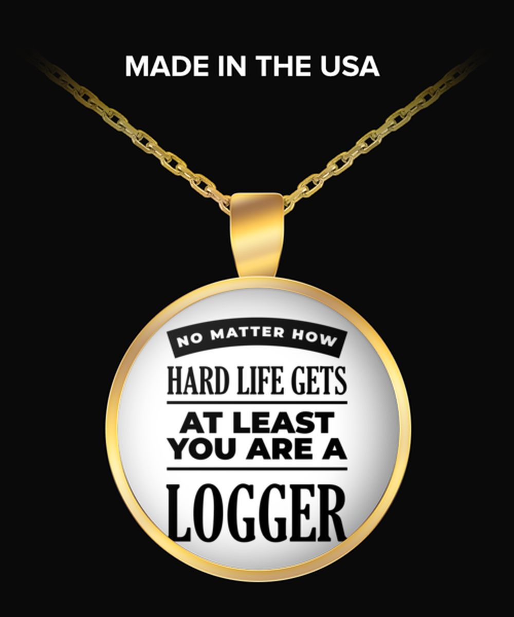 Funny Logger Necklace Round Gold Pendant - No Matter How Hard Life Gets You Are A Logger - Unique Inspirational Gift Best For Men Women