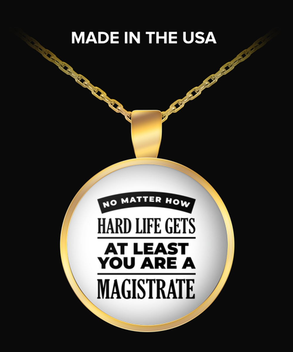 Funny Magistrate Necklace Round Gold Pendant - No Matter How Hard Life Gets You Are A Magistrate - Unique Inspirational Gift Best For Men Women
