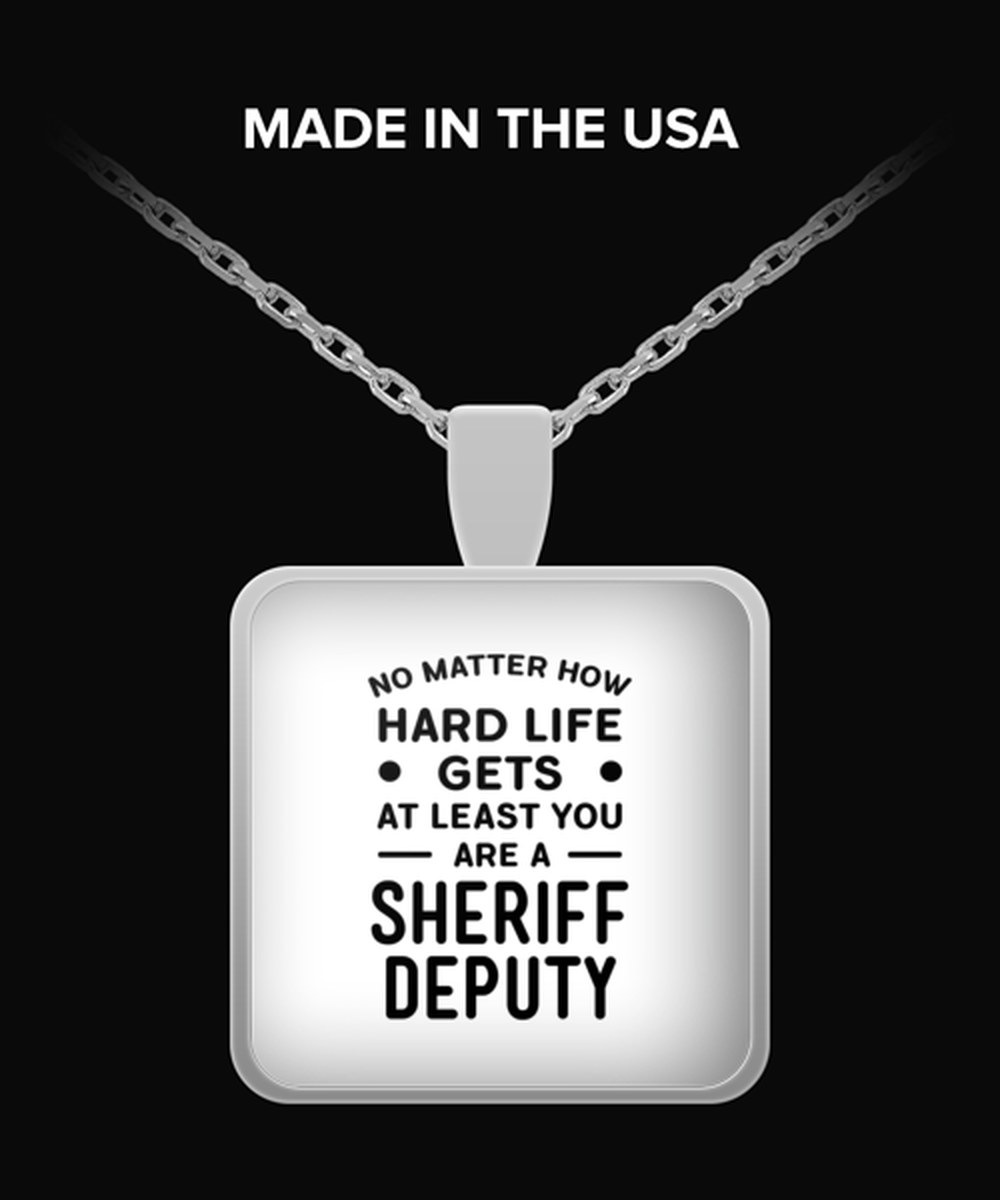 Funny Sheriff deputy Necklace Square Pendant - No Matter How Hard Life Gets You Are A Sheriff deputy - Unique Inspirational Gift Best For Men Women
