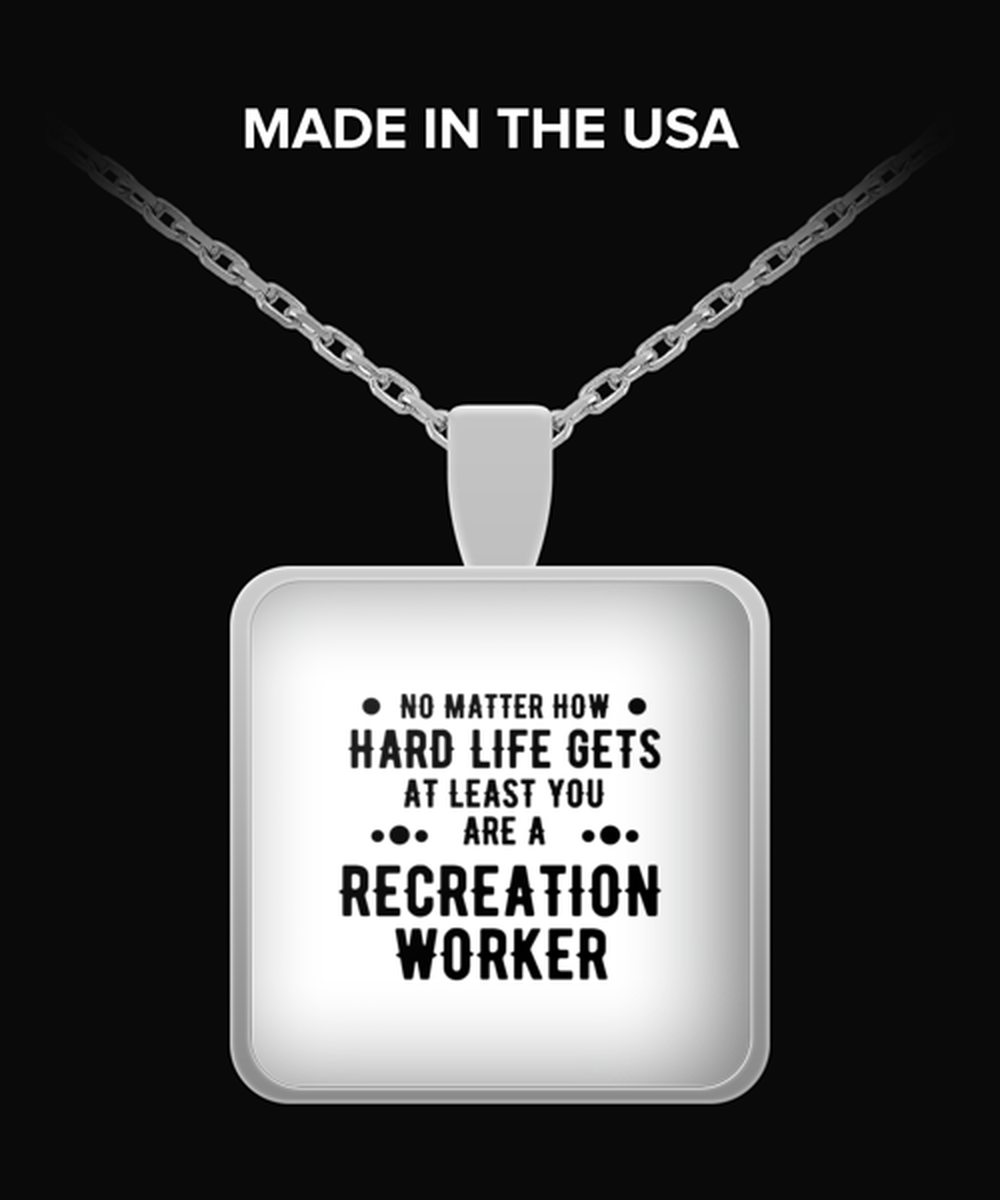 Funny Recreation worker Necklace Square Pendant - No Matter How Hard Life Gets You Are A Recreation worker - Unique Inspirational Gift Best For Men