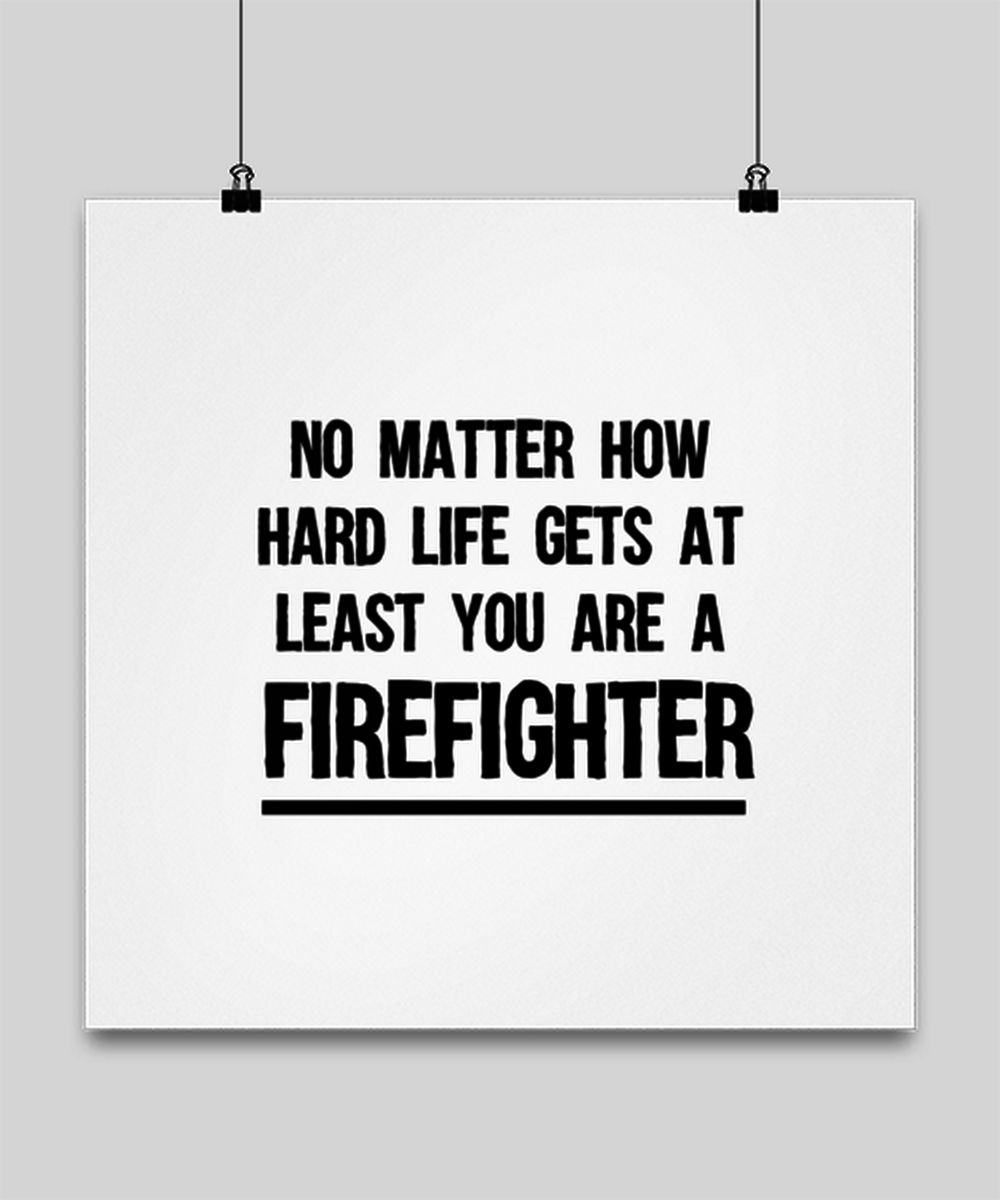 Funny Firefighter Poster 16x16 - No Matter How Hard Life Gets You Are A Firefighter - Unique Inspirational Gift Best For Men Women