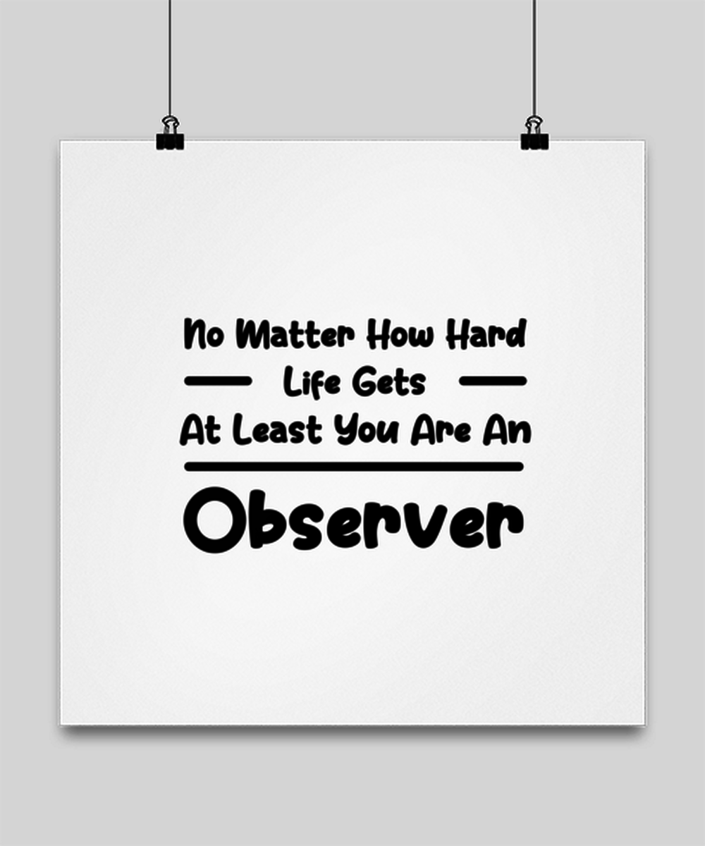 Funny Observer Poster 16x16 - No Matter How Hard Life Gets You Are An Observer - Unique Inspirational Gift Best For Men Women