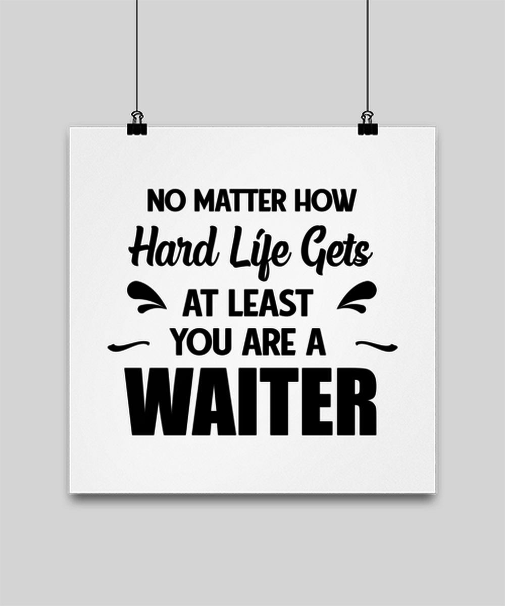 Funny Waiter Poster 14x14 - No Matter How Hard Life Gets You Are A Waiter - Unique Inspirational Gift Best For Men Women