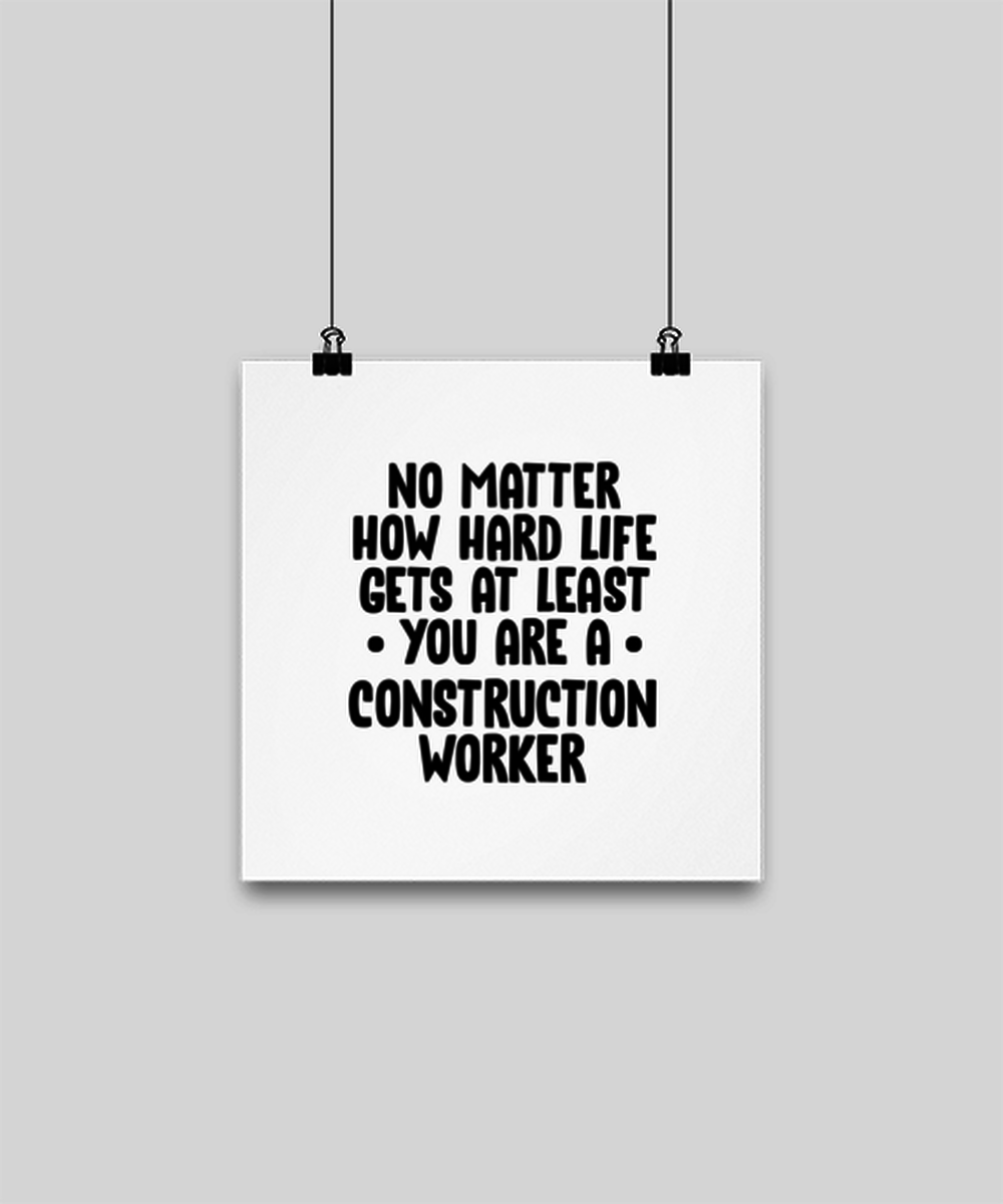 Funny Construction Worker Poster 14x14 - No Matter How Hard Life Gets You Are A Construction Worker - Unique Inspirational Gift Best For Men Women