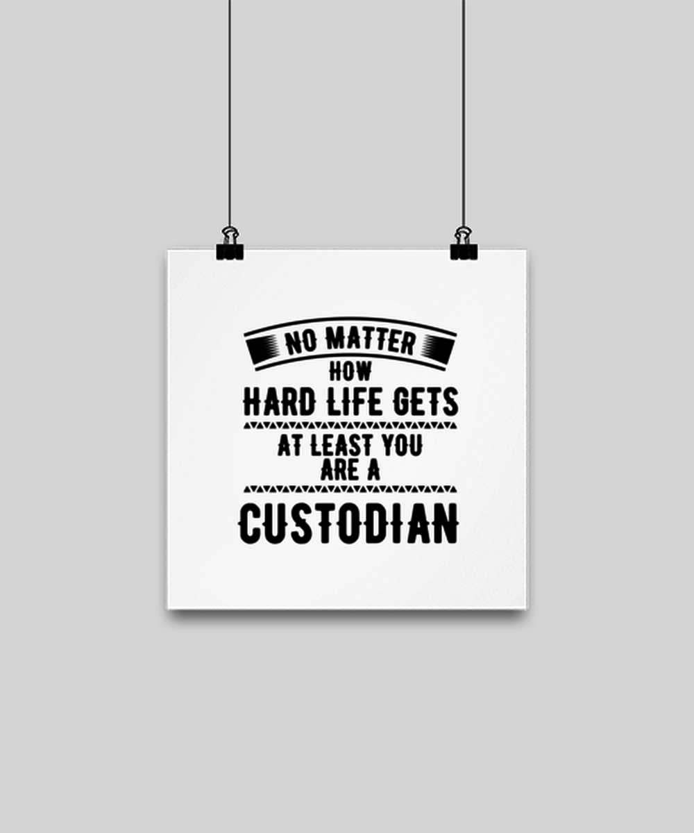 Funny Custodian Poster 14x14 - No Matter How Hard Life Gets You Are A Custodian - Unique Inspirational Gift Best For Men Women