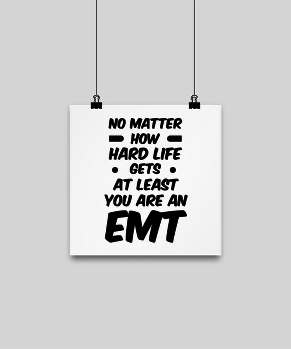 Funny EMT Poster 16x16 - No Matter How Hard Life Gets You Are An EMT - Unique Inspirational Gift Best For Men Women